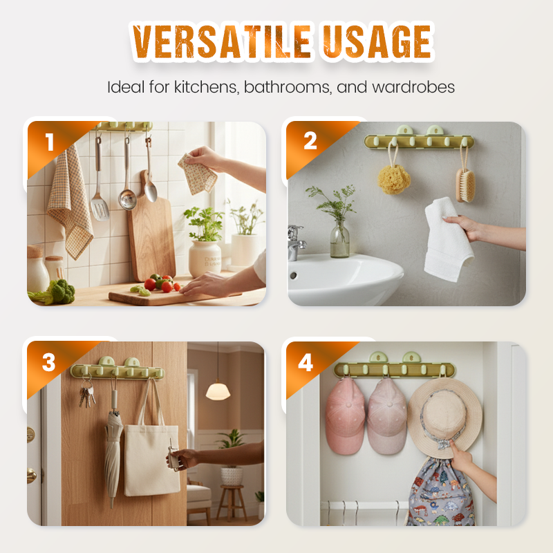 DURABLE CONSTRUCTION - Crafted from high-quality and sturdy ABS material, this hook rack is built for daily use. It is lightweight yet resilient, capable of holding multiple items securely while resisting moisture and wear over time.